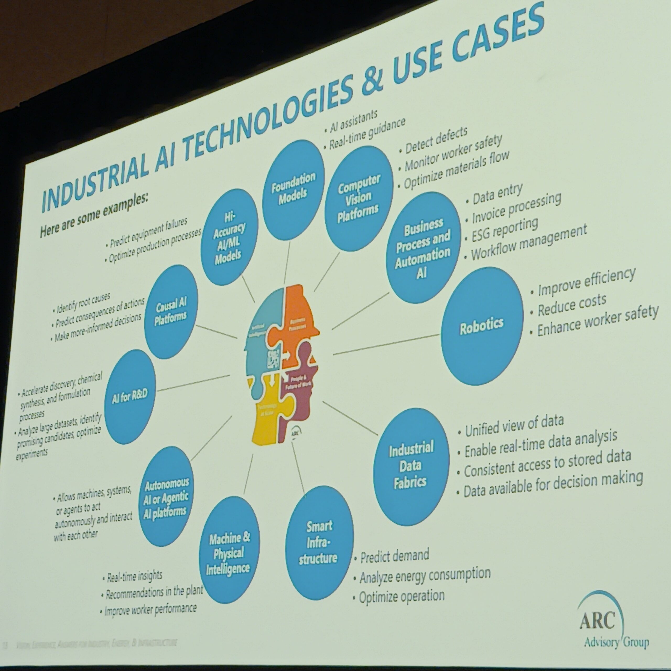 Every recent show I have attended discusses AI applications. Control Engineering frequently adds more industrial AI/ML progress at www.controleng.com/ai-and-machine-learning. A few observations on AI from the 2025 ARC Industry Forum follow: