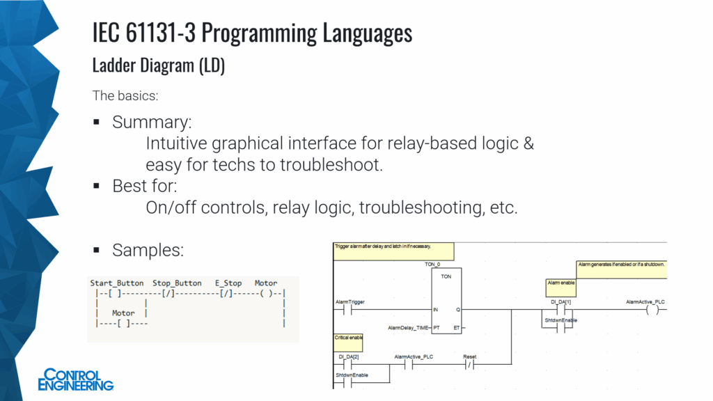 Reviewing IEC 61131-3 programming languages provides explanation about why some might be more useful than others and important things to know when choosing one programming language over another. Israelsen explained the IEC established the IEC 61131-3 programming languages with the goal of: