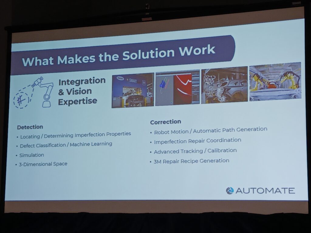 - Automate 2025 application session called “The final frontier of automation in a high-volume automotive paint shop: Robotic paint repair on a moving line,” discussed integration of robotics, motion control, machine vision and abrasive technologies.