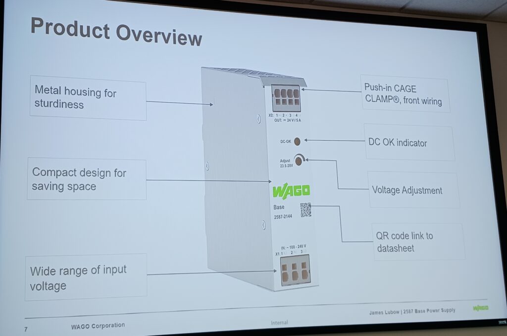 Lubrow also offered more about the Wago 2587 Base Power Supply: