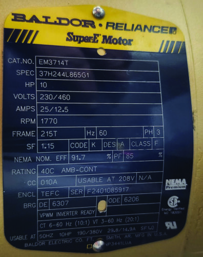 Before a building owner installs or powers up a VFD, be sure to check the nameplate data and confirm the voltage to be applied is appropriate. Many VFDs have been damaged on power up because the wrong voltage was applied. Verify all three phases are present or, if single phasing (yes, you can apply single phase power to a standard 6-pulse VFD and generate 3-phase output) that the proper de-rate is applied.