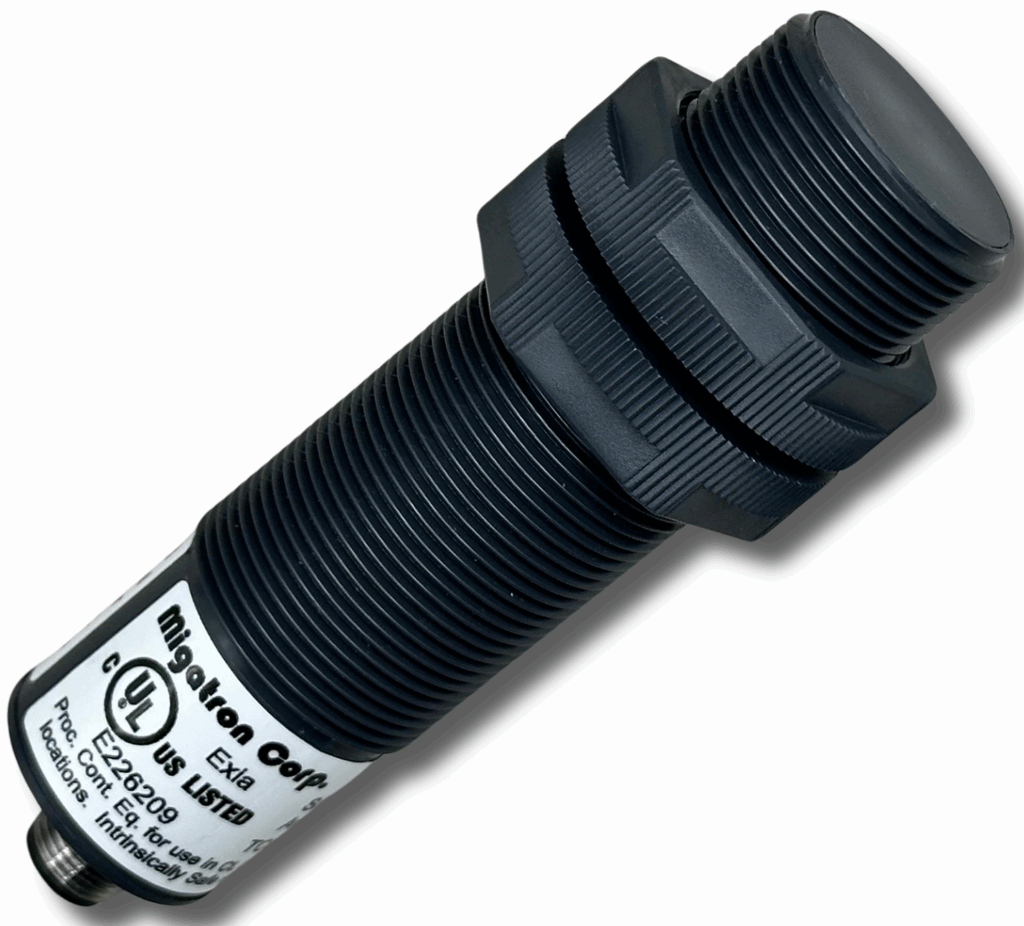Migatron Corp.’s ultrasonic sensors, including the RPS-429AA-40P-IS2, are designed for accurate distance measurement in industrial settings. The sensor is certified for intrinsic safety and is approved for use in hazardous locations including Zone 0–2 and 20–22, and Class I, II, and III environments.