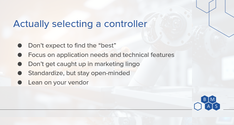 “I’ll say up front that you’ll never have the time to select the ‘best’ controller,” Breen explained in his notes for the webcast (Figure 2). “As with most engineering applications, we’re going to lean on rules of thumb and experience to quickly narrow the list of options to something that will work reliably for a reasonable cost (good not best).”