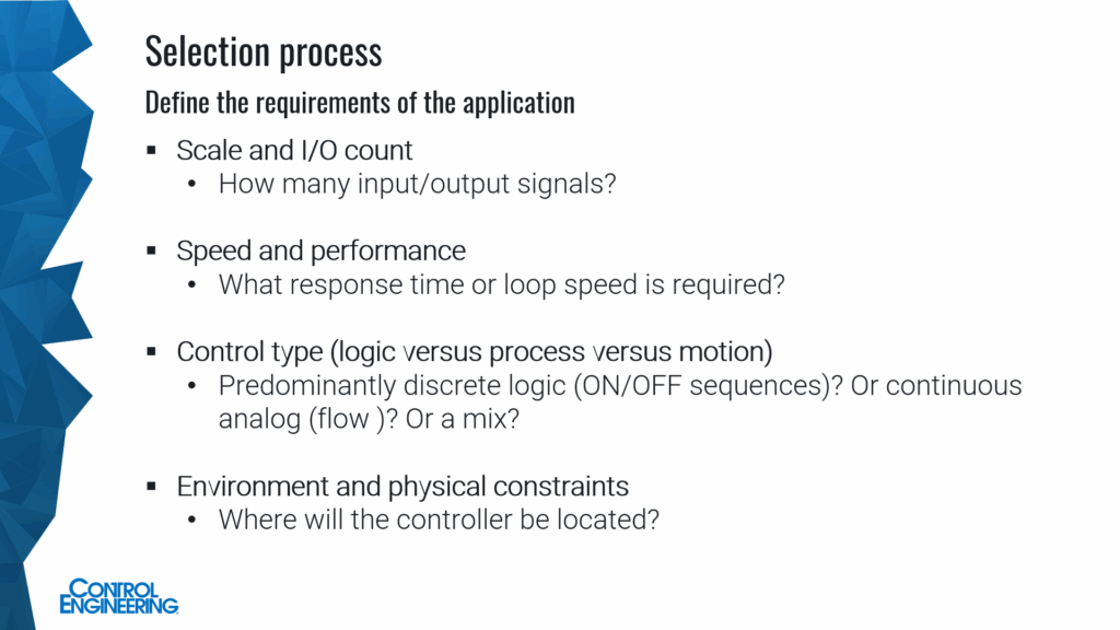 - See the webcast for more advice: Register for the Control Engineering webcast, “How to select the right controller type for the automation application,” archived until Sept. 25, 2026.