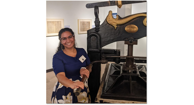 Rekha is a volunteer docent at the Printing Museum in Houston, TX. The Printing Museum has a fully functional letterpress studio, and Rekha has been learning the art of letterpress using the museum’s extensive collection of antique metal and wood type. She provides guided tours on the weekends and oftentimes leads one of the museum’s most popular monthly events, Ink and Drink, where the community can try their own hand at letterpress.