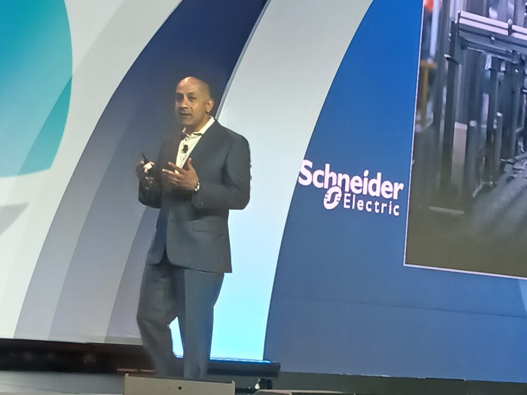 Figure 1: Aamir Paul, president, North America Operations, Schneider Electric gave an Automate 2025 keynote presentation: “Redefining industry: A bold new era for American manufacturing and the opportunities it creates for the American workforce” at Automate 2025 from Association for Advancing Automation (A3). Courtesy: Mark T. Hoske, Control Engineering, WTWH Media