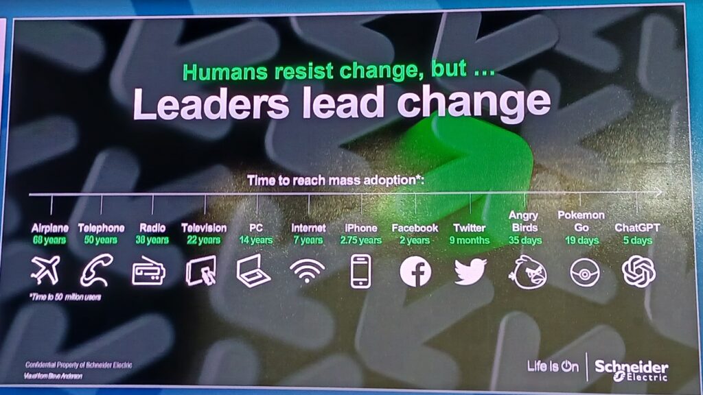 Figure 2: Acceleration of change is increasing in the adoption of software-driven technologies explained Aamir Paul, president, North America Operations, Schneider Electric, at Automate 2025. Courtesy: Mark T. Hoske, Control Engineering, WTWH Media