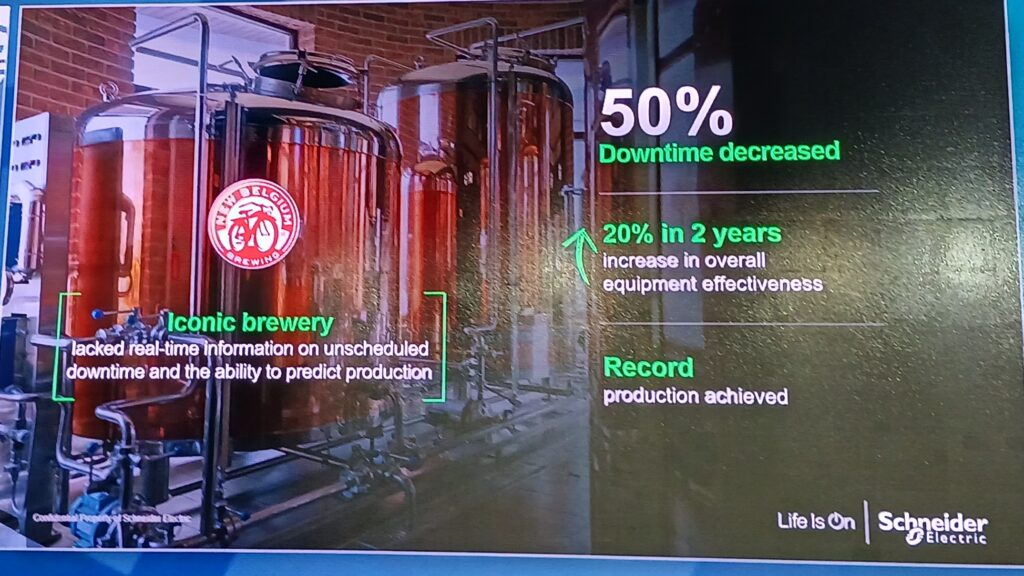 Figure 4: New Belgium Brewing had a 50% downtime reduction, and a 20% increase in OEE over two years, resulting in record production for the facility, said Aamir Paul, president, North America Operations, Schneider Electric, at Automate 2025. Courtesy: Mark T. Hoske, Control Engineering, WTWH Media
